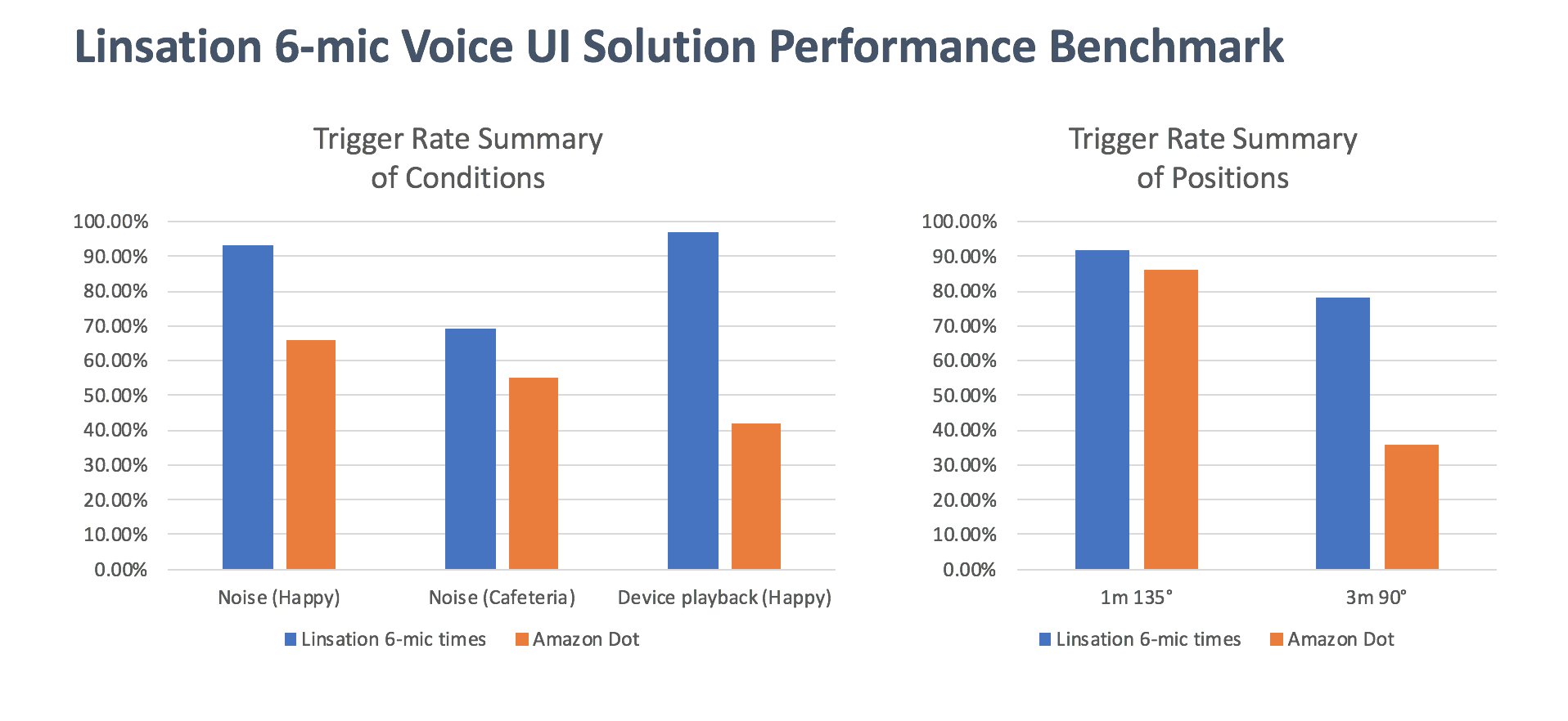 聆感智能的远场语音解决方案使用目前世界顶尖的拾音降噪算法,在家庭环境下能有效滤除环境噪声,提高设备的语音识别率。此方案可有效应用在智能音箱、Soundbar、电视、电视盒等智能家居产品上。